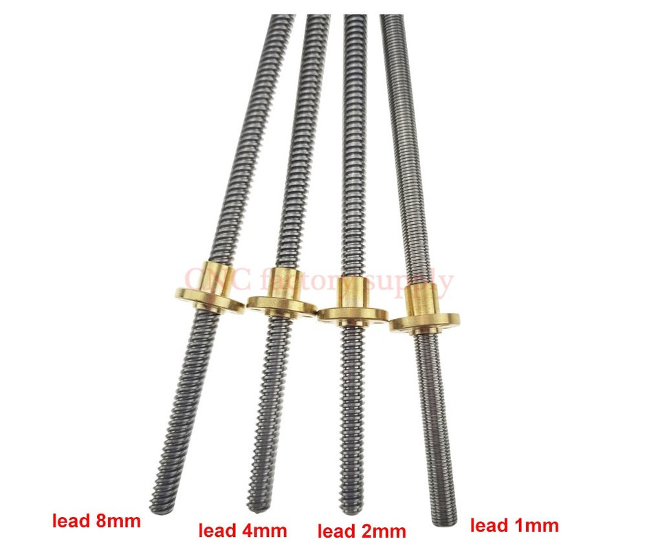 ходом за один оборот (Lead) - Вычисляется умножением шага (Pitch) на количество заходов резьбы (Starts). Обычно используют 2, 4 или 8 мм/оборот.